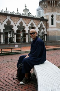 We blew our budget yesterday on the city tour, purchases at Beryl’s chocolate factory (what was I thinking to take Colin there?!), and getting sucked into a touristy restaurant for dinner. Today we attempted to re-coup and spent the day wandering around the city, especially Little India. First stop, coffee (2.20 Ringgit; about 50 cents each), then a visit to the Masjid Jamek mosque. We both made dashing figures in our robes:
