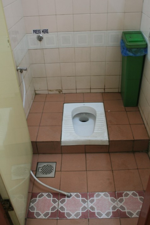 KL will also be memorable for the first time I saw a squat toilet. Hoses are provided for you to gently cleanse yourself “afterwards”, but I couldn’t figure out how you are supposed to dry yourself off – no puff of air like a bidet, and no toilet paper provided either. Getting-dry presented something of a dilemma, so I never did try one out. At the airport yesterday morning I decided to go to the bathroom before boarding. I heard our names being called over the loud speaker while I was running from stall to stall trying to find a western loo…
