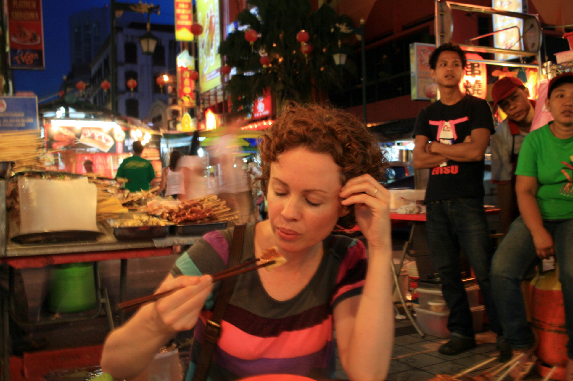 I will also remember the night markets, which were very like the markets in Phuket. Jalan Petaling (the street our hotel was on) closes to traffic every evening and rapidly fills with stalls. You only have a narrow space to walk through and you can buy just about anything – Louis Vuitton tissue box perhaps? Fake cigarettes? T-shirts, handbags, belts, and of course, food stalls everywhere – fruit, roasting chestnuts, violently coloured baked goods.