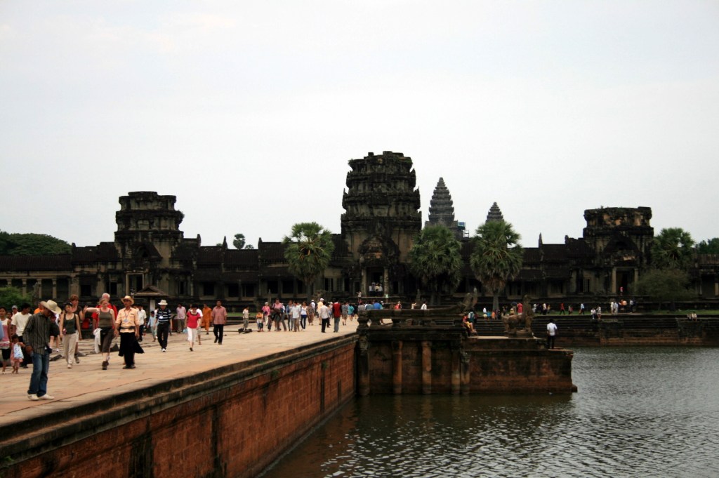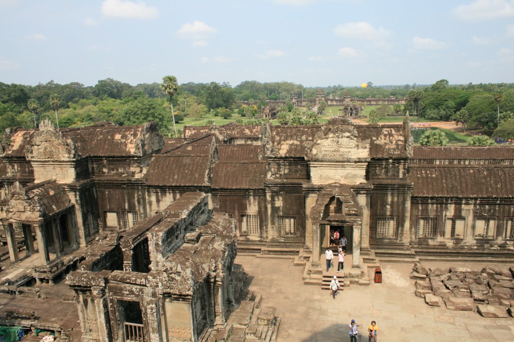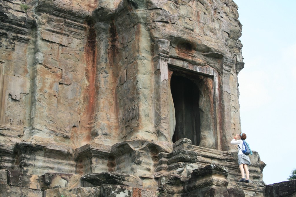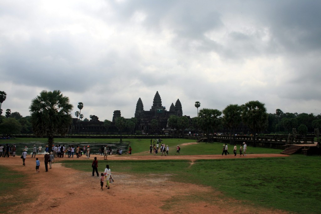 Angkor Wat is the largest, and most well known of the Temples of Angkor. It is massive, with the temple structures, grounds and moat covering almost 200 hectares. It’s actually the world’s largest religious monument, and has been in continuous use since it was built in the early 12th century. Angkor Wat is an extremely important cultural symbol for Cambodians, and at Khmer New Year, many, many people travel to Siem Reap to see Angkor Wat (and the other Temples), pray, and picnic in the grounds. It’s very hot at the moment – too hot for most tourists – and probably 90 percent of the hoards of people at the Temples over the New Year period are Cambodians. It’s been really great to see and hear how proud Cambodians are to have such ancient and beautiful Temples in their country.