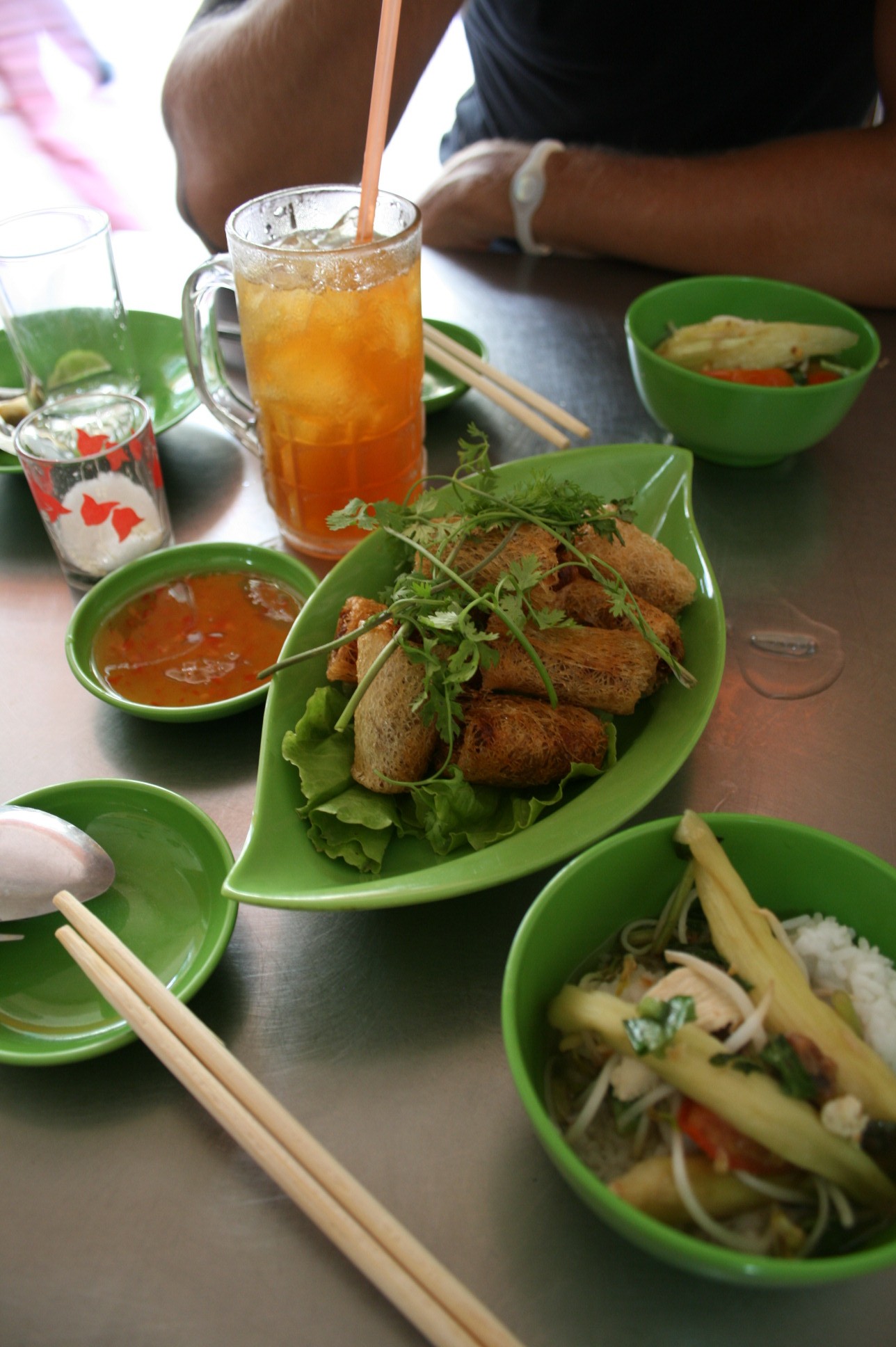The best spring rolls ever, plus chicken and vegetable hotpot – at Ban-Bong restaurant, Chau Doc