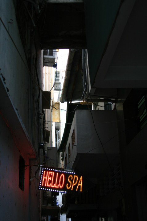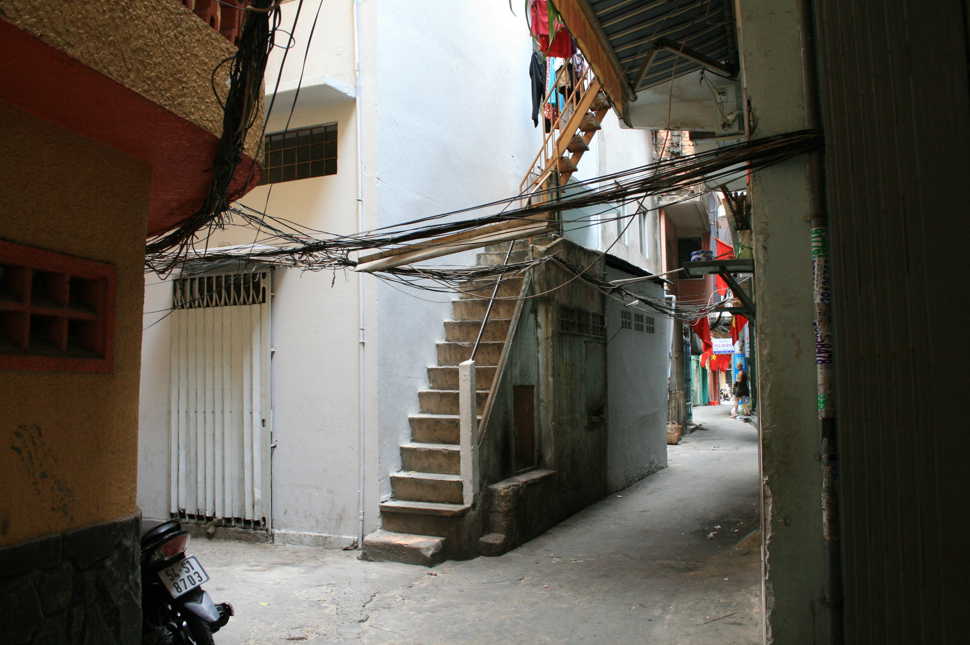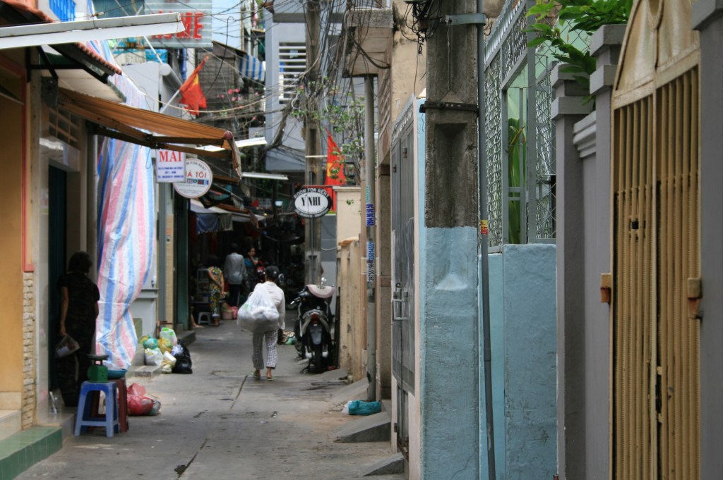 Each day we’ve been in Saigon we’ve found ourselves drawn to the little alleys that wind their way throughout the inner city. Walking along the streets, these alleys suddenly open up in your peripheral vision – blink, and you’ll miss them. They are wonderful to walk through – bringing you into close proximity with tiny hotels, shops, and residential apartments, and glimpses of everyday life – children practising the piano, families gathering on the front steps for a meal, washing drying on balconies, motorbikes zipping past, little dogs growling if you get too close to their territory. When approaching a corner you never know if you will come upon another alley, hit a dead end, or almost step through someone’s front door.