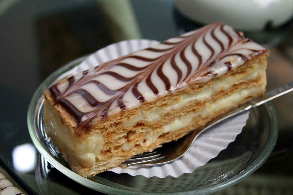 Mille-feuille at Croissant D’Or. Crisp, almost salty pastry, layered with creamy custard and topped with icing. Divine.