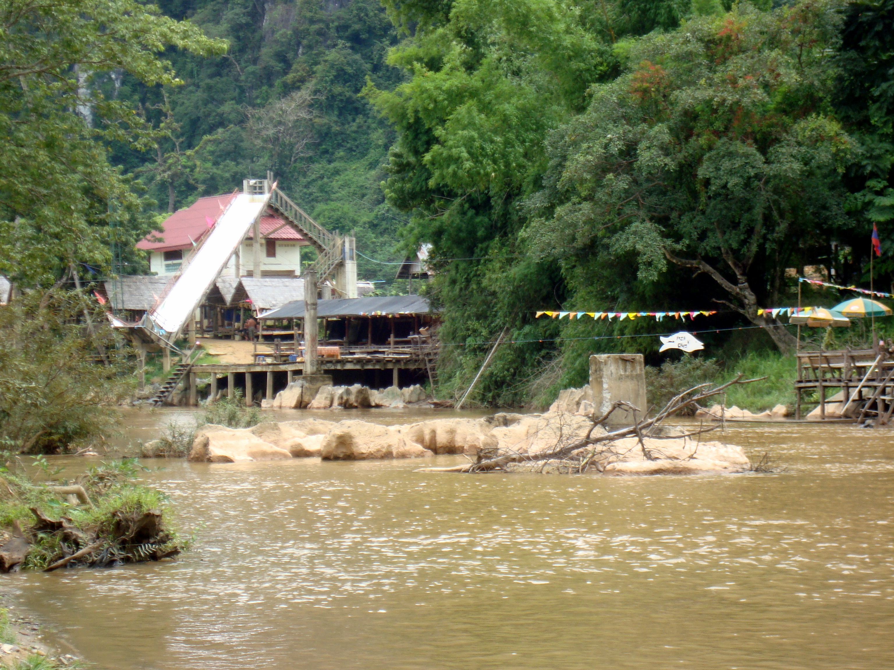 The infamous Slide of Death. A tourist broke his neck on this slide the week before we arrived. Safety controls are pretty much non-existent at the bars along the river.
