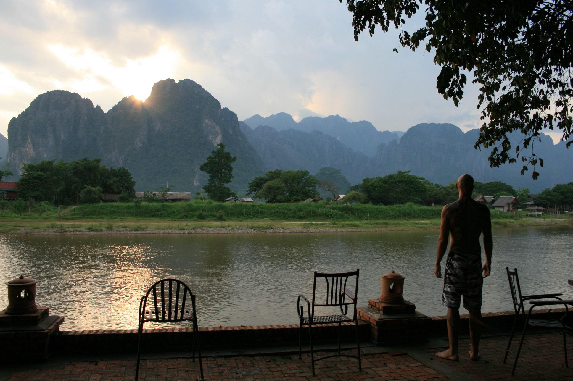 Tourists and locals alike have mixed feelings about Vang Vieng. Ten years ago, Vang Vieng was a sleepy village in the Laos countryside, but it is now a backpacker mecca, well known for adventure sports (especially tubing), happy pizzas, mushroom shakes, and cheap beer. The main streets of town are lined with guesthouses, restaurants, bars, and tour agencies. While tourism has pumped significant funds into the local economy, many Lao people we spoke to bemoaned the impact of such unhampered development on the traditional Lao way of life, which many feel has been compromised. What everyone can agree on, however, is that Vang Vieng is simply beautiful.