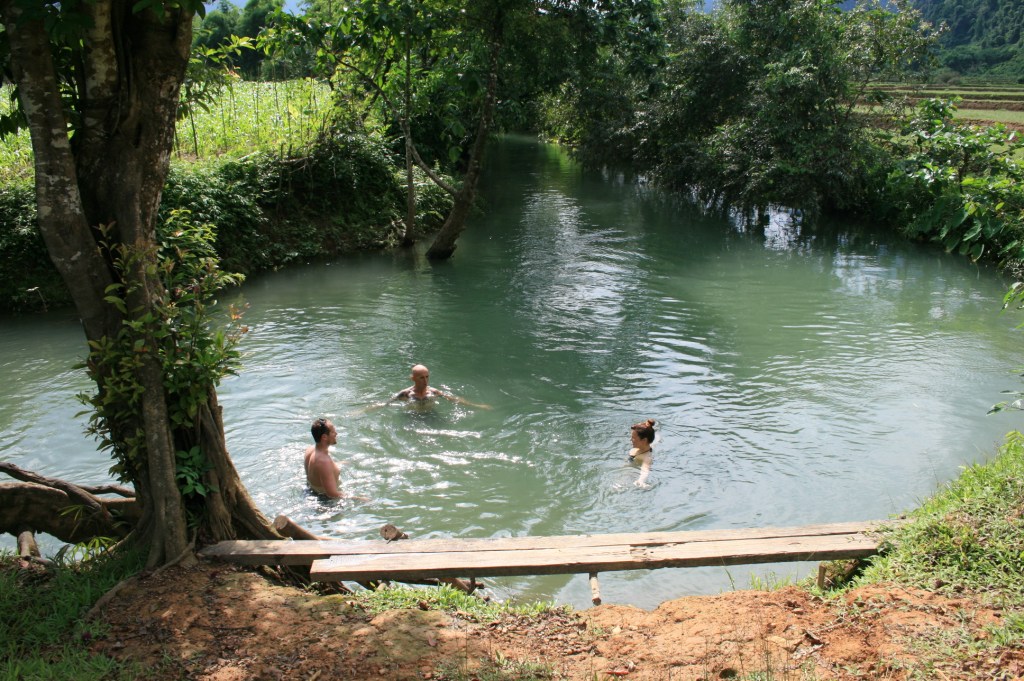 Tubing, the most popular activity in Vang Vieng, involves floating down the river in an inner tube, stopping at the numerous makeshift bars that have been built along the riverbanks. The bars boast all sorts of attractions, such as rope swings, water slides, pumping music and mud wrestling, while whiskey buckets, free shots of local Lao Lao, and the ever-popular Beer Lao flow freely. The object is usually to get pretty drunk, hence the predominance of limping and bandaged tourists in town. In fact, tourists are quite regularly killed (usually drowned) or seriously injured while tubing. Tourists who are legless by lunchtime hardly make a good impression on the local people, and its not surprising that the locals sometimes treat you with indifference, or even hostility.