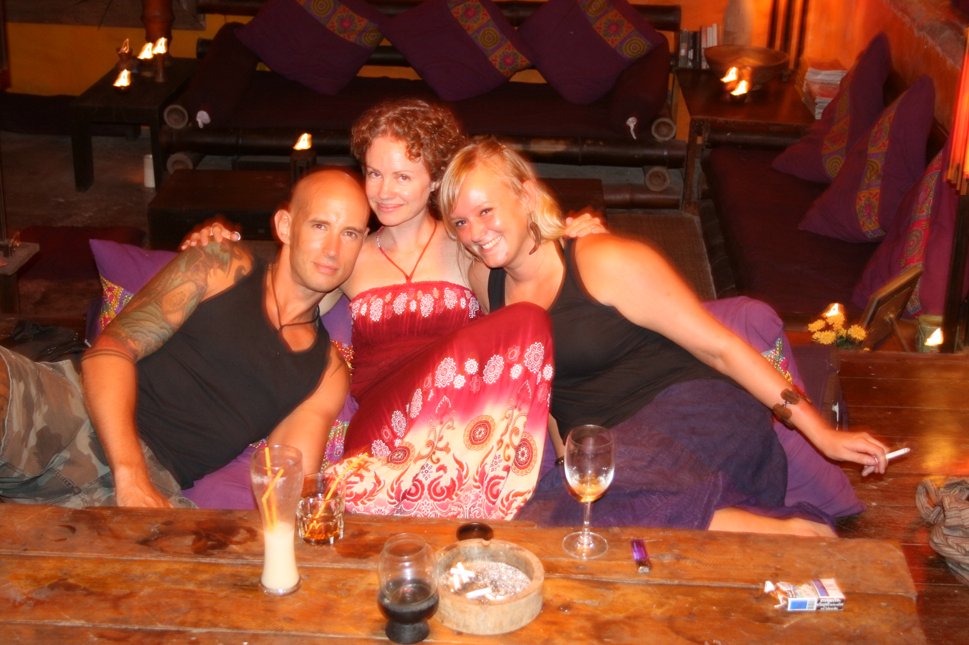 Peace, love and tofu abound in Pai. We stayed here for seven nights, hanging out, making friends, eating well (more on this in the next post), and listening to live music in little candle-lit bars most nights. Colin found a kickboxing school, and I took several yoga classes with a 66-year-old Thai woman with an impressive Bridge, red hair down to her bum, a studio with a seriously wonky floor, and two vegetarian dogs. These classes, and a couple of forceful massages from the indomitable Mamalon (“Soft is No Good!!!”), have helped to get rid of my little traveling kinks. Hopefully I am now well fortified, because we still have to face Bangkok in just a few days time…