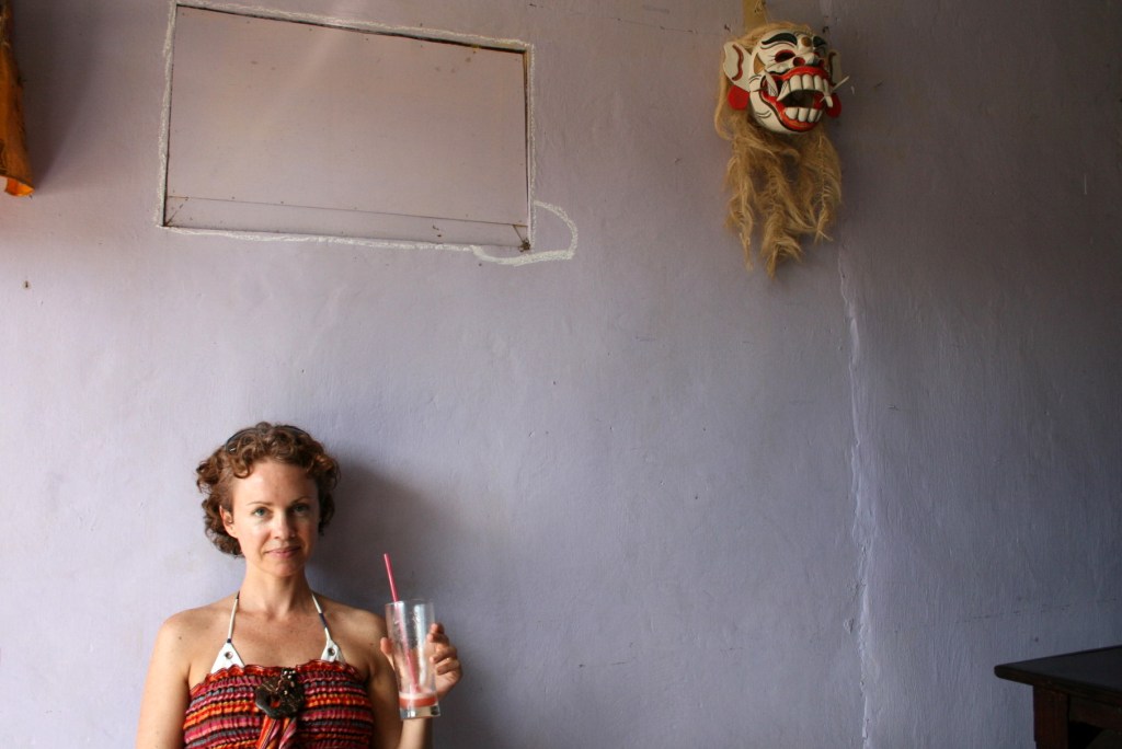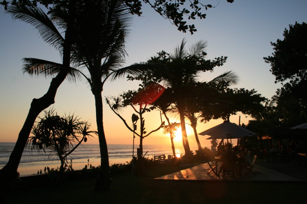 After six nights in Ubud, we headed across the island to Canggu Beach, a quiet surf beach about one hour’s drive north of Kuta. We stayed in the only hotel, and ate most of the time at the only local restaurant about five minutes walk away. Each morning we sat outside under palm trees and watched people surfing while we sipped coffee, ate croissants, and remembered to eat something healthy as well (fruit). By 9 or 10am we had claimed our loungers by the pool, and proceeded to work on our tans, dip briefly in the pool to cool off, and then retreat under the palm trees to read, doze, sip cold Bintang, and people-watch for the rest of the day. In the evenings we went for long walks along the beach, watching beautiful sunsets, before heading to Windy’s Warung for spring rolls, fried rice, and calamari.