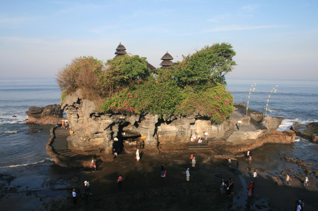 One morning we got up early, jumped on a motorbike we had hired the night before, and rode out to Tanah Lot, one of the most important temples in Bali. The temple is carved into a large rocky outcrop right on the waters edge. Visitors are not allowed onto the temple itself, so we had to view it from afar. This photo was taken as we sipped hot coffee at a cliff-top cafe with a stunning view of the temple.