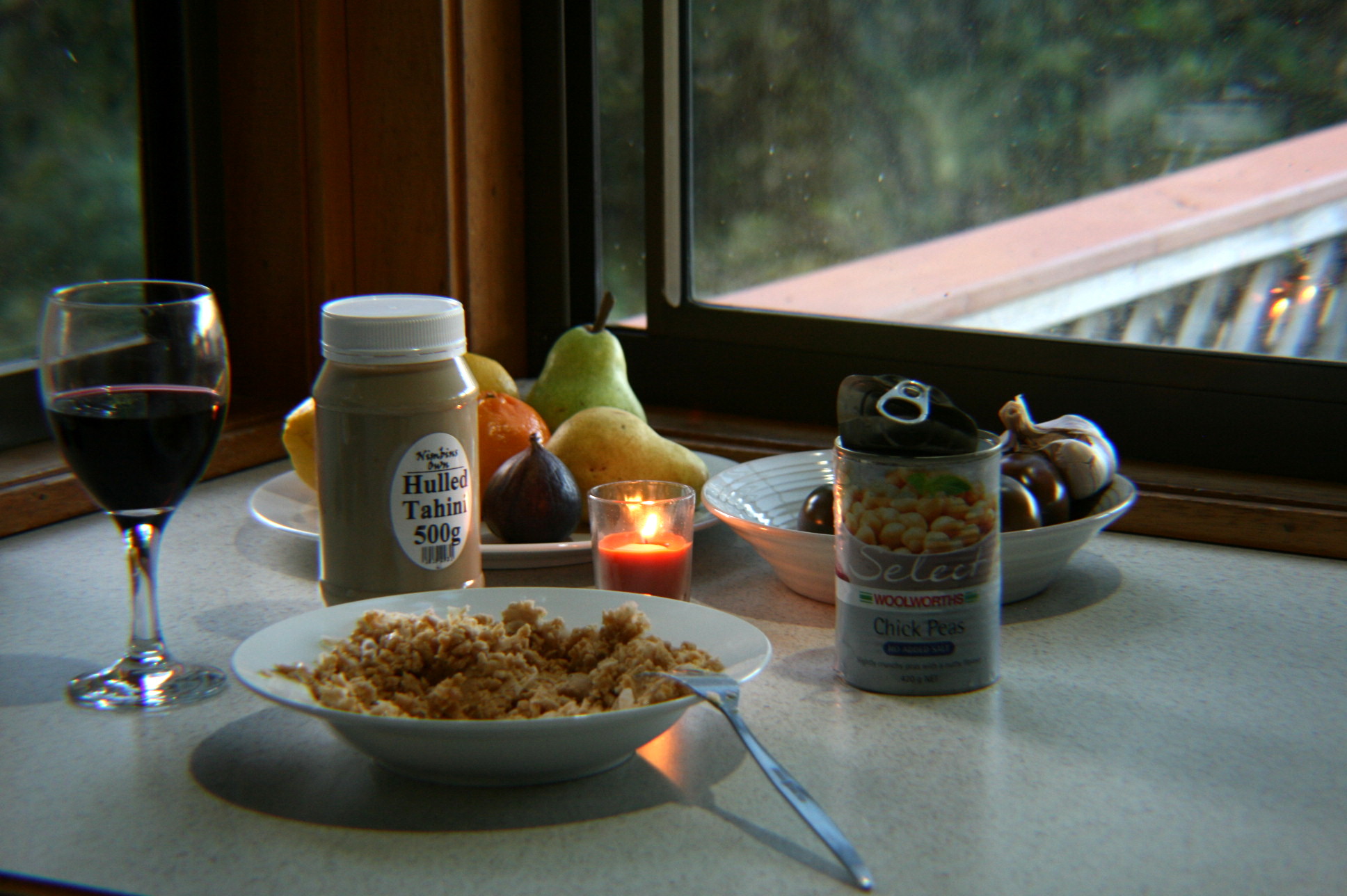 Back in my undergraduate student days the only cookbook I owned was Alison Holst’s “Meals without Meat”. I can confidently say that between 1993 and around 2005 I tried at least 50% of the recipes in that book, spurred on by a lengthy period of vegetarianism, and Alison’s inherent trustworthiness (she could easily be your very own Mum, passing on tried and true family recipes). Although it’s not a book I have used much in the past few years, it remains a stained, spattered and well-loved possession. It’s currently packed away in our storage unit back in Auckland; even so, I can effortlessly conjure the double-page photographic spread that accompanies Alison’s recipe for hummus.