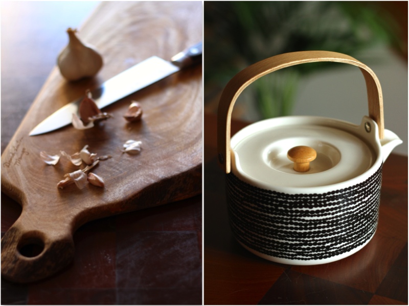 David Linton mango chopping board, bought in Maleny in Feb 2014 as our wedding anniversary gift to each other. Marimekko teapot, purchased as a personal congratulations for a major work achievement in 2013.