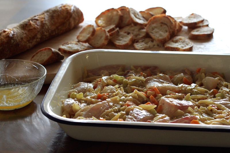 Making fresh fish and lemon pie