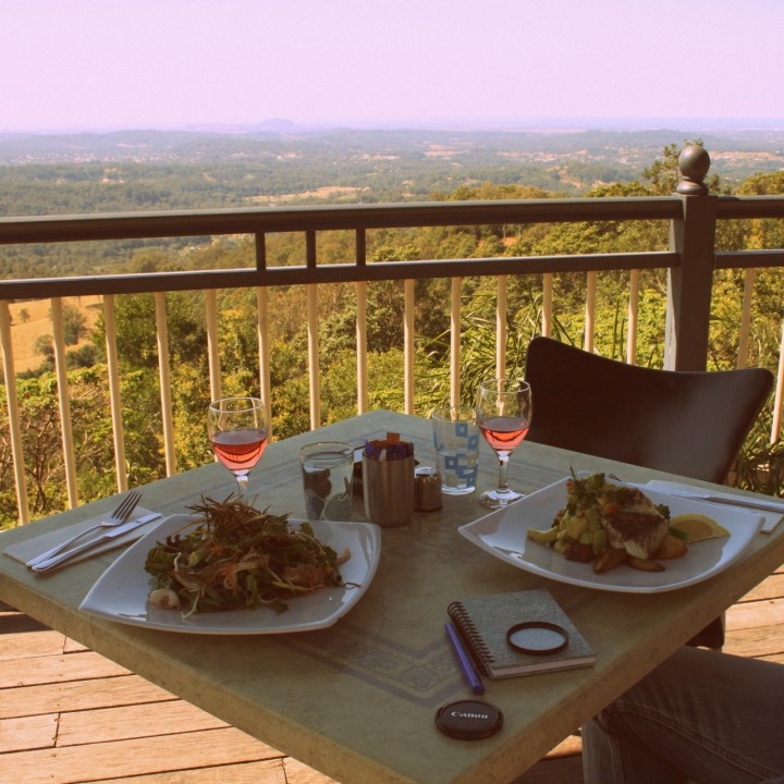 Three weeks ago we took a ferry over to Coochiemudlo Island to spend the day wandering the quiet roads and beaches. We had packed a picnic, but all I wanted for lunch was the container full with peppery rocket, a salty-oily white wine vinaigrette shaken in a screw top jar, and a couple of hard-boiled eggs. No matter that the wind whipped tendrils of rocket about the beach and that I got a touch of sand on my egg; I easily entered that zen-like state of food bliss, where mastication consumed all concentration, apart from the careful arrangement of next mouthful on fork. We are hardly talking gourmet ingredients here, which is what makes this interesting. Either a) I am setting my standards for bliss far too low, b) that the Italians were right all along, and that simple, when fresh and high quality, is always best, or perhaps c) that it didn’t really matter what I ate, that the pretty setting and healthy appetite generated by a long walk in brisk sea breezes would have made almost anything taste wonderful.