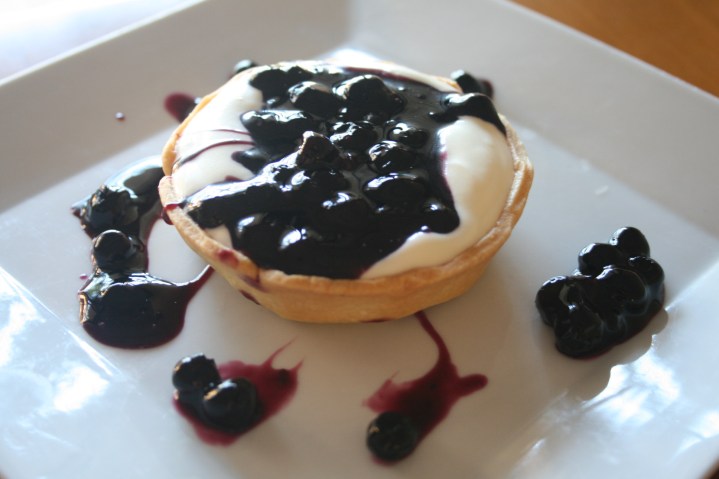 After a meaningful pause, the day’s purpose was once more taken up with vigour, focusing this time on the long-awaited tarts. Mixing together equal quantities of whipped cream and yoghurt with a touch of honey, I filled the cases, then topped them with the fresh blueberry and vanilla sauce I had made earlier. Yes, I admit, that the success of the pink cocktail meant that I had slightly over-cooked the pastry cases and more than slightly over-thickened the blueberry sauce. While the tarts lacked some of the visual appeal of Valli’s version, they found their home in our stomachs without any issue whatsoever. I took some wonderful photos of Colin’s besmeared face and pudding-drunk eyes that I am understandably forbidden to share, but filed away for my own satisfaction, they represent a fitting end to a holiday, and a good day’s work indeed.