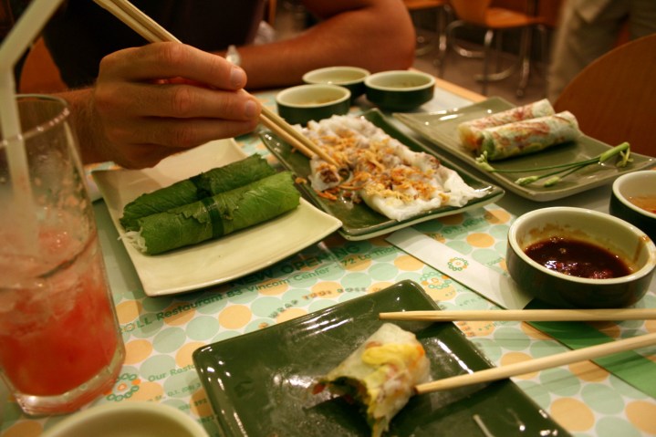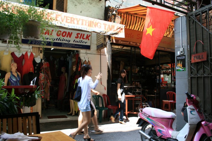 We knew within 2-3 hours that we loved Saigon. Like any big city in Asia, there is a certain degree of chaos that comes from the intensity of concentrated humanity. Saigon is a very modern city, and it’s buzzing with activity. The traffic, particularly, seems crazy. Drivers in Cambodia were fairly sedate, but in Saigon they drive much faster and seem less courteous. A few major intersections have traffic lights, but most don’t. To get through, you must employ a mixture of pushing in (because you’d never get anywhere if you didn’t) and giving way. Crossing the road has been a bit hairy – pedestrian crossings painted on the roads don’t register with motorists at all! On our first day we were too scared to cross busy roads by ourselves, so we had to wait until a local came along so we could stick to them like glue. But we’ve adapted surprisingly quickly. It takes a bit of guts – basically you have to do your best to cut through the gaps, and the rest of the time, trust that the oncoming traffic will swerve to avoid hitting you. Apparently, Hanoi is even worse (Mum, try not to worry!).
